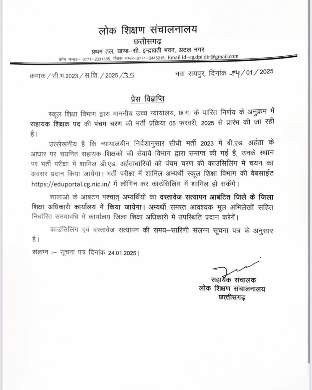 हाईकोर्ट के आदेश के बाद डीएलएड अहर्ता वाले सहायक शिक्षकों की नियुक्ति प्रक्रिया की शुरुआत 5 फरवरी से होगी। इसके तहत काउंसिलिंग के लिए गाइडलाइन जारी कर दी गई है।