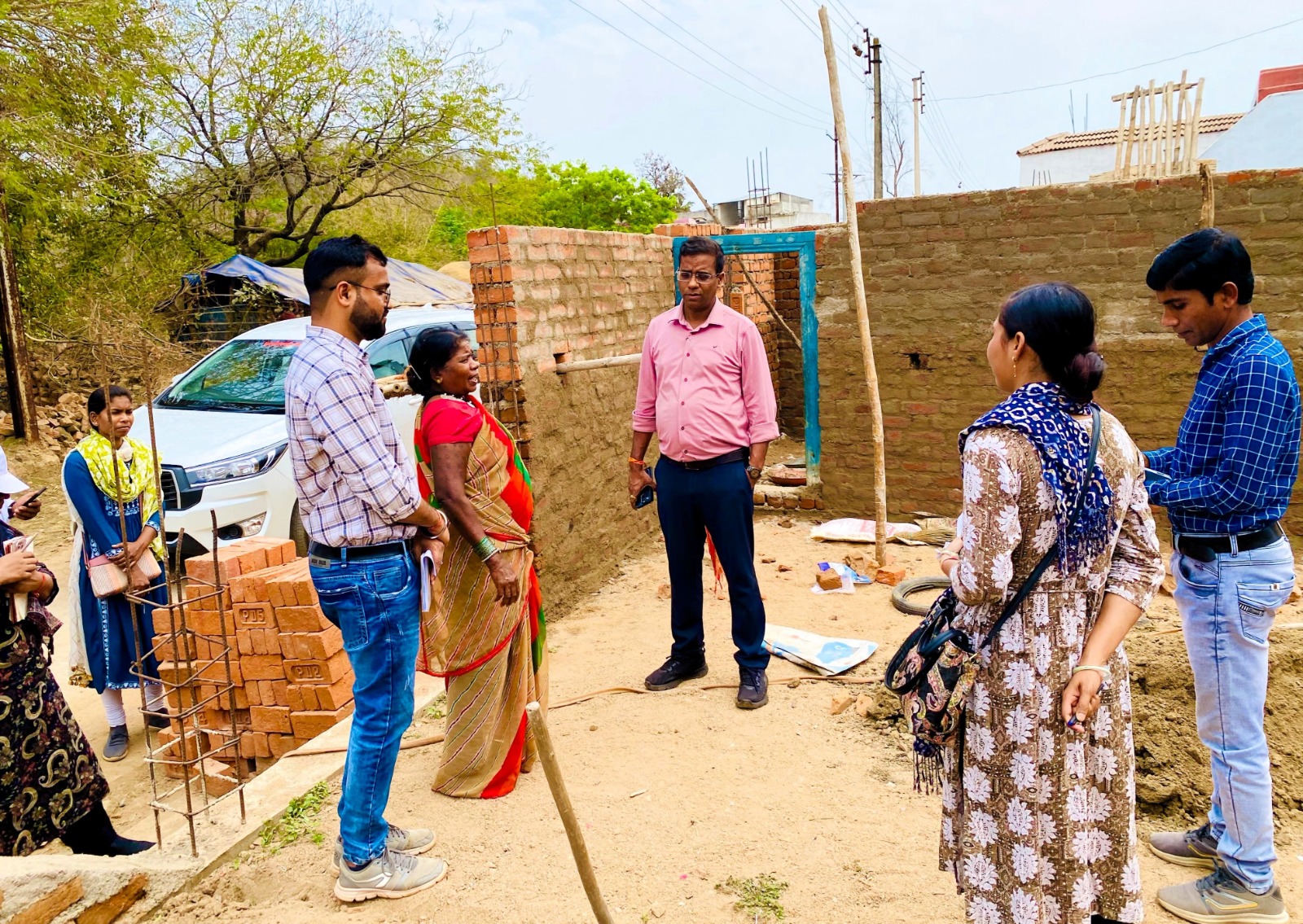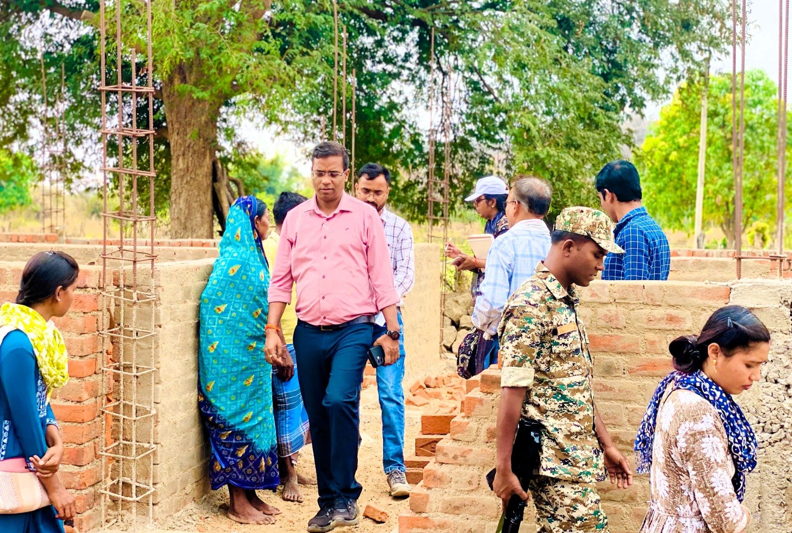 सीईओ जिला पंचायत पहुँचे सुदूर वनांचल क्षेत्र में रधिया बाई के निर्माणाधीन प्रधानमंत्री आवास में
